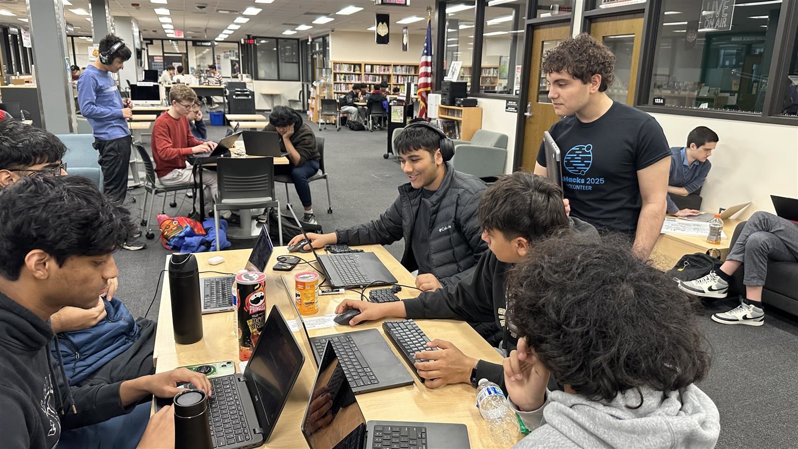 A day of coding and collaboration unfolded at John Hersey High School as the 3rd Annual Hackathon brought together over 70 students from District 214 and surrounding suburbs. With the theme “educating others,” students of all experience levels took on challenges, developing everything from apps to websites in a fast-paced, 12-hour coding marathon.